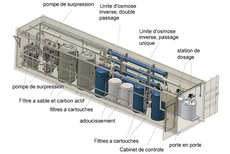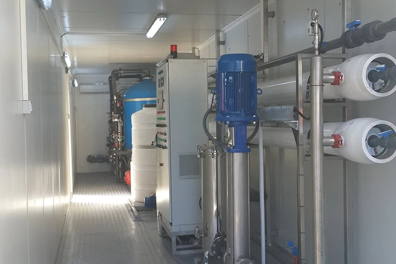 Reverse Osmosis Systems can be delivered completely in one or more containers, depending on the capacity of system.Systems which are used to purify water by removing salts,contaminants and rejecting bacteria, sugars and proteins. The brackish water system can be designed to treat a wide variety of waters – rivers, lakes, wells; the sea water system can desalinate both deep sea and beach well waters. PMC Engineering Reverse Osmosis Systems are in the range of 1 m3/hour and 100 m3/hour; however, our engineers are capable of manufacturing custom designed Reverse Osmosis Systems to fit customer’s